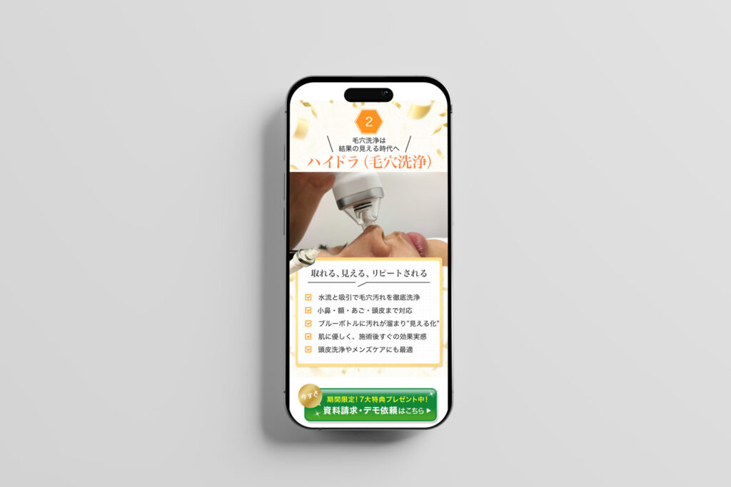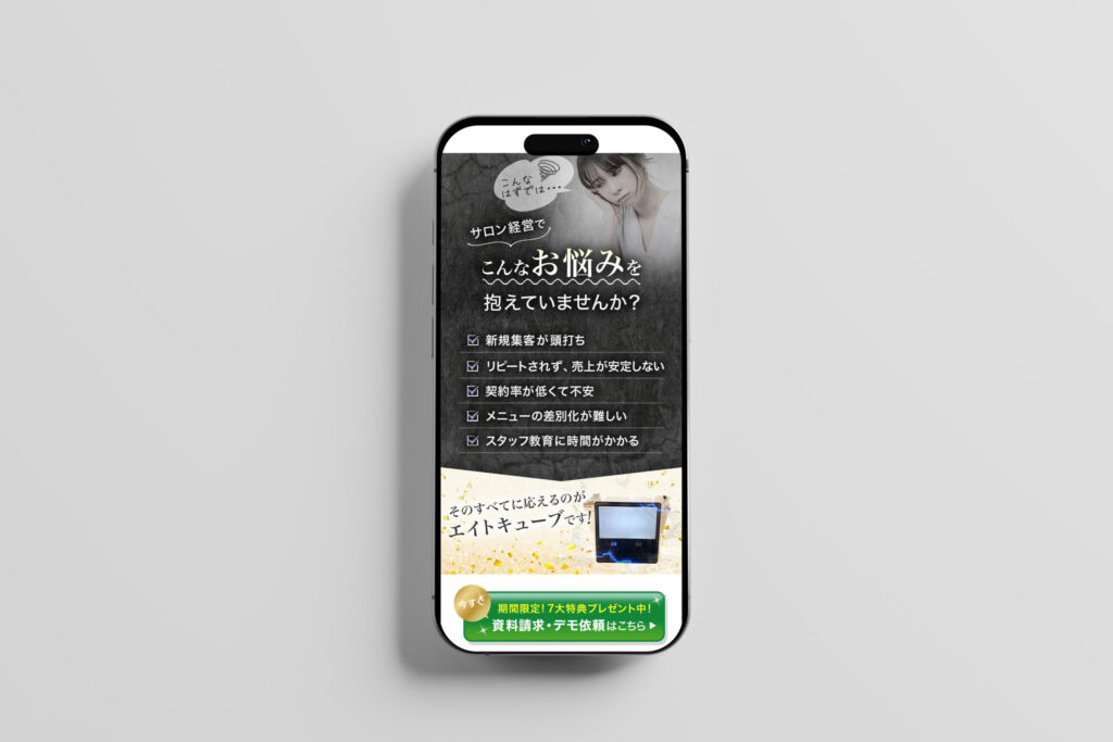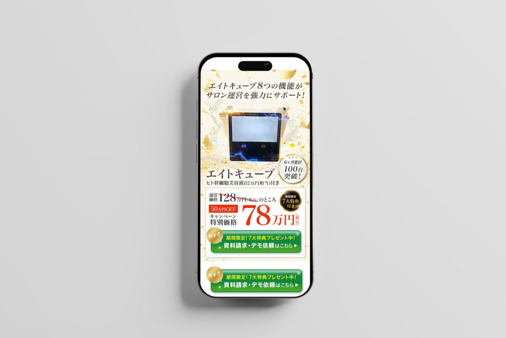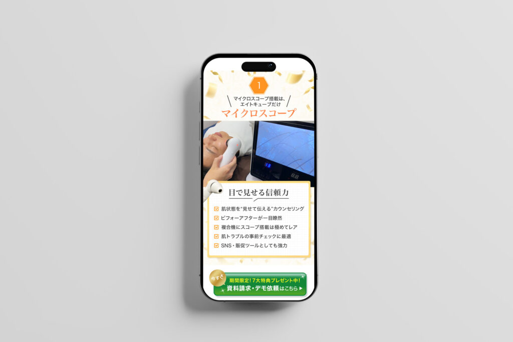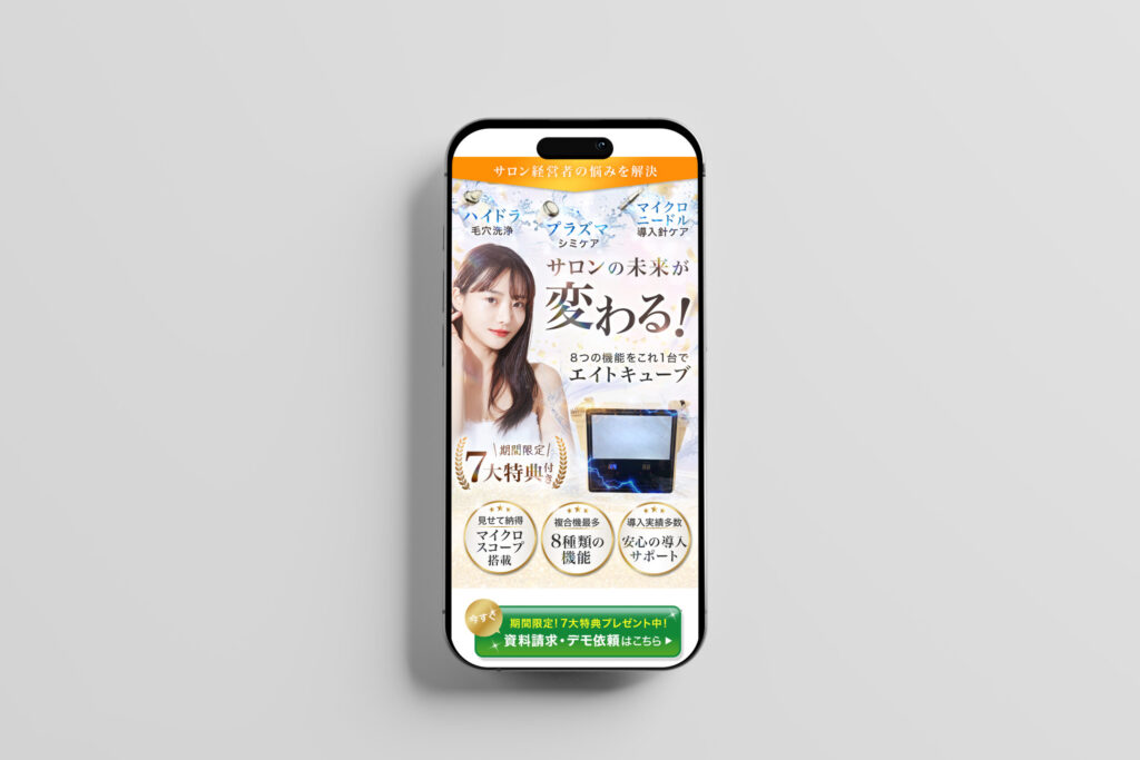 8月 7, 2025 / 最終更新日時 : 8月 7, 2025 anze Uncategorized エイトキューブのスワイプLP 概要 エイトキューブのスワイプ型LPを制作しました。 ターゲット 美容サロン経営者 担当範囲 デザイン 使用ツール Photoshop 制作期間 2週間